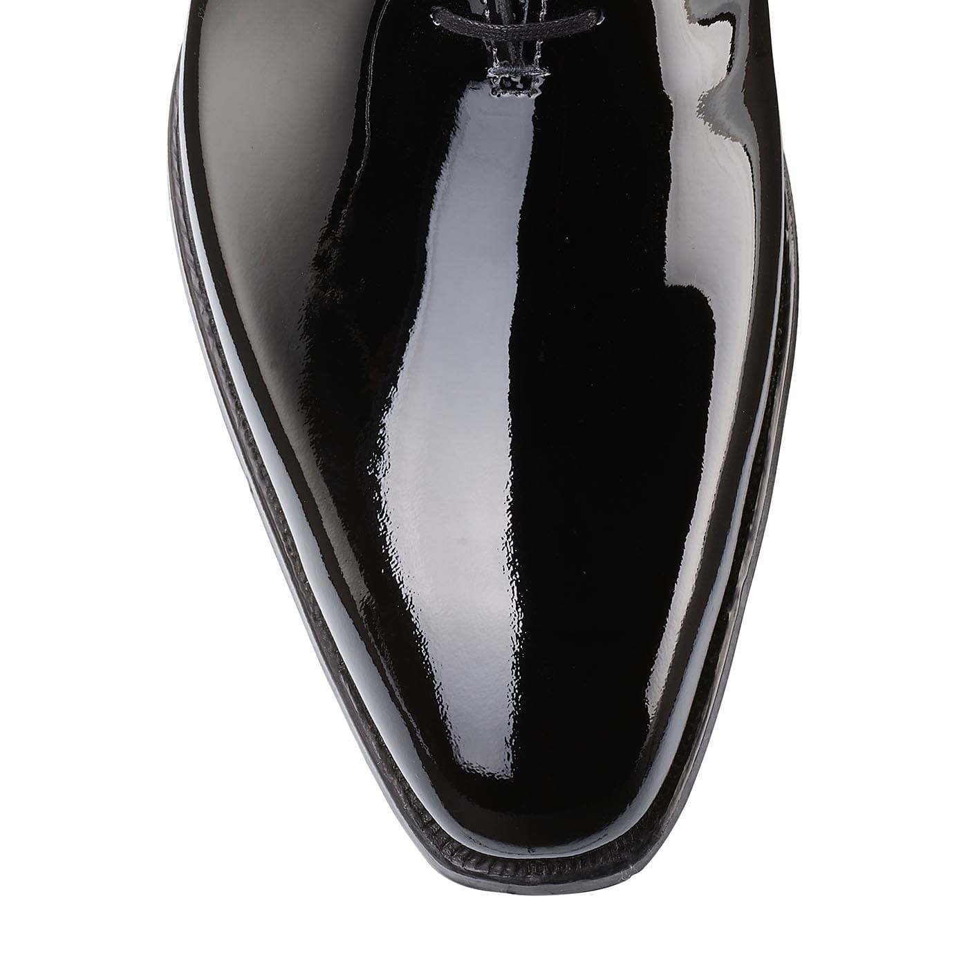 Alex, a plain fronted whole-cut oxford made from the finest black patent leather and featuring single leather soles. From the Men’s Main collection.