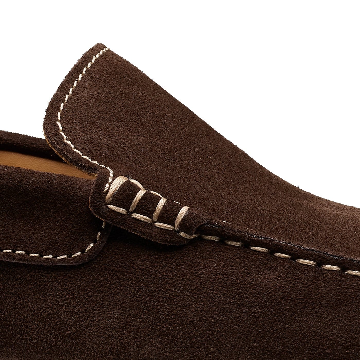Como, a plain loafer style driving shoe made from dark brown suede with cleated rubber soles. From the Men’s Main Collection.