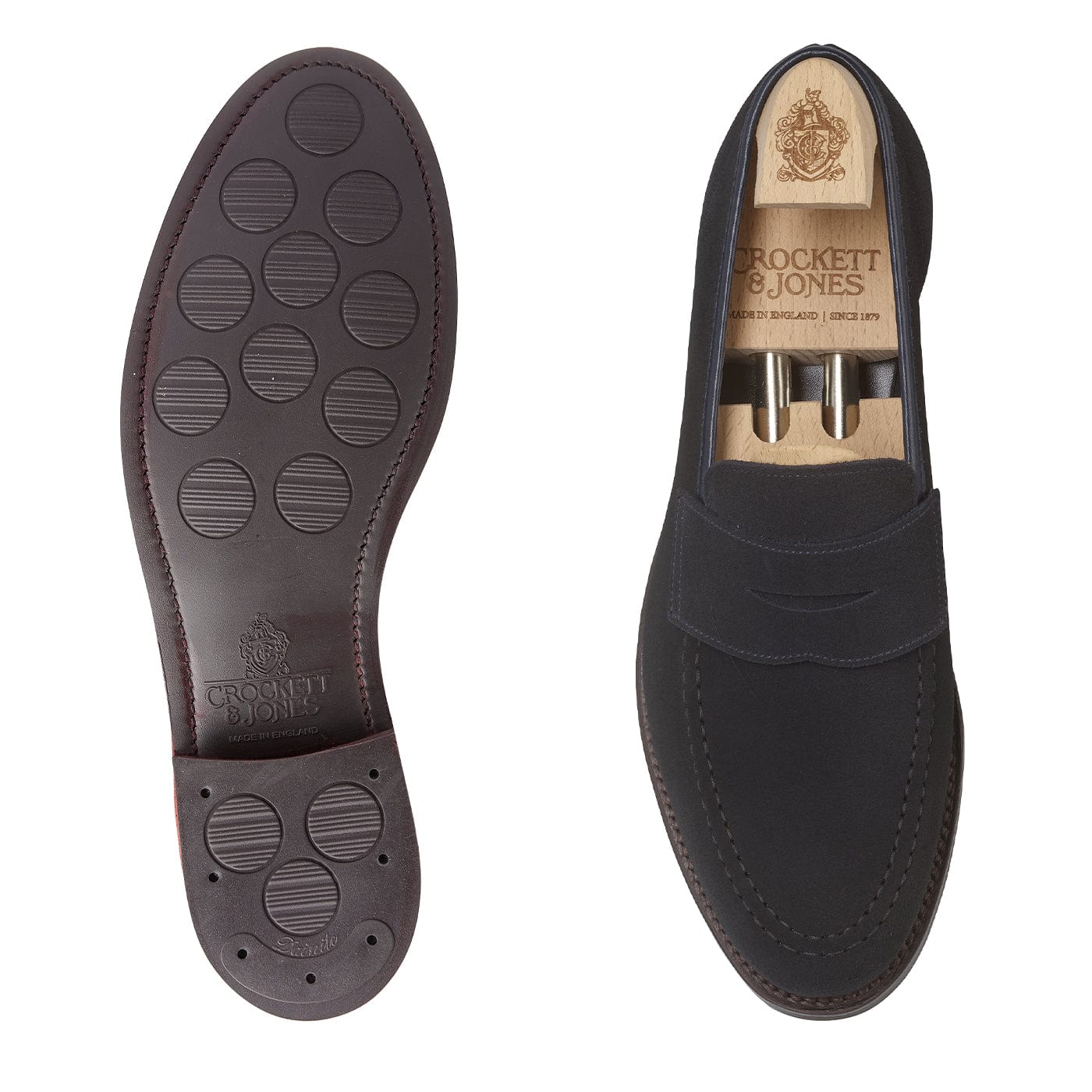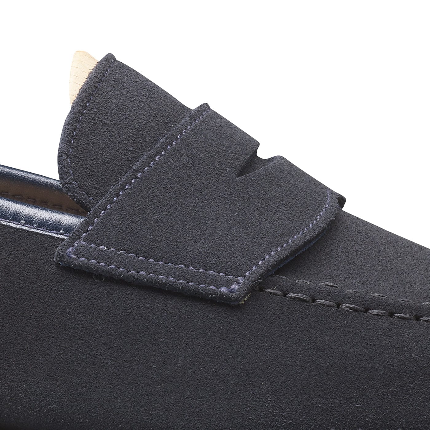 Harvard 2 is an unlined version of our classic penny loafer ‘Boston’. Developed on last 376, Harvard 2 features a closer heel fitting for a more secure fit. Made from the finest navy suede leather wit…