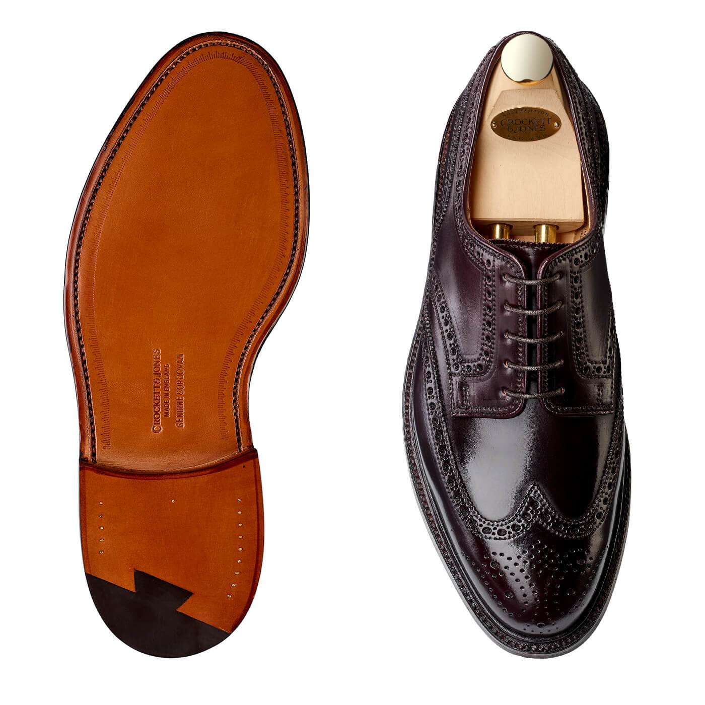 Pembroke, our classic full brogue country-style derby shoe with wing tip design and punching detail. Made from Horween’s burgundy shell cordovan with double leather soles and a storm welt for added wa…